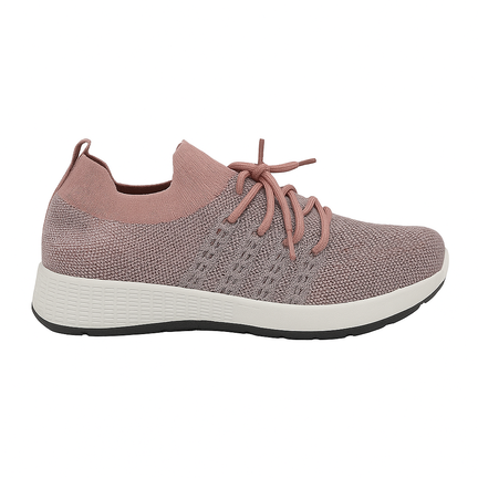 Denne grå-rosa strikkede sneaker er skabt til dig, der ønsker både komfort og et stilrent udtryk. Overdelen er lavet af åndbart, elastisk strikmateriale, som tilpasser sig foden for optimal pasform. Den elastiske soklignende krave gør skoen nem at tage af og på, mens den bløde indersål og lette ydersål giver høj komfort hele dagen. Et perfekt valg til både afslappet brug, gåture og hverdagsaktiviteter.