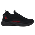 Sporty og moderne herresneaker i sort med røde detaljer og sort sål. Overdelen er fremstillet i et fleksibelt strikmateriale, der giver åndbarhed og en tætsiddende pasform. Slip-on designet gør skoen nem at tage af og på, samtidig med at den sidder sikkert og komfortabelt. De røde kontrastdetaljer på siderne og hælen giver et markant og trendy look. En let og praktisk sneaker, perfekt til både hverdagsbrug, fritid og et sporty streetwear-outfit.Størrelsen er almindelig.